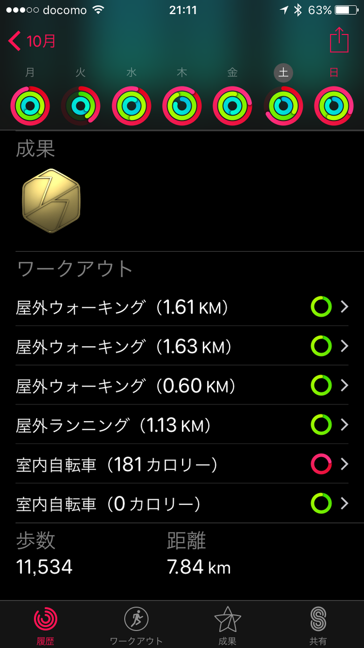 AppleWatchの室内自転車分はダブりデータを防ぐ仕様でカロリー計上されません。