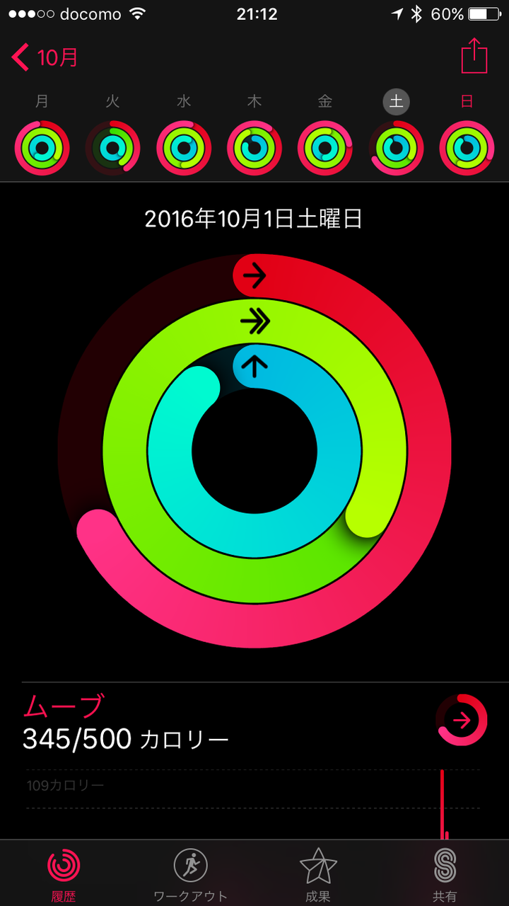 昨日は室内自転車(181kcal)というApple Watch計測の消費カロリーが加算されないで、