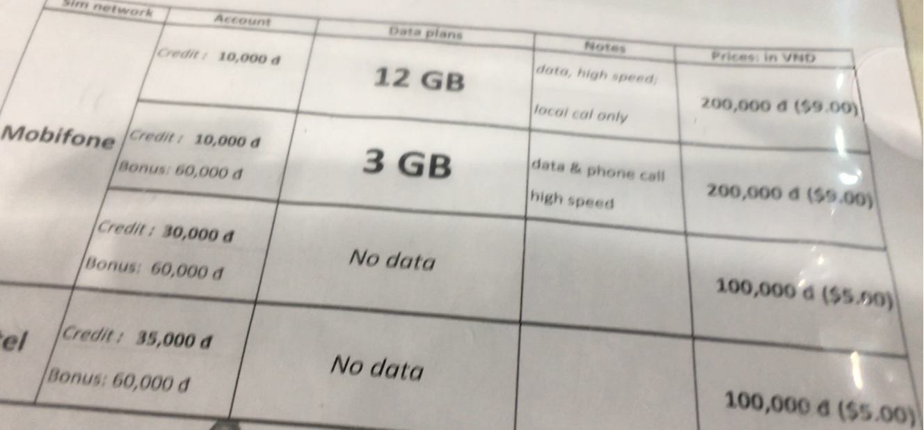 それでも同じMobifoneの同じプランで